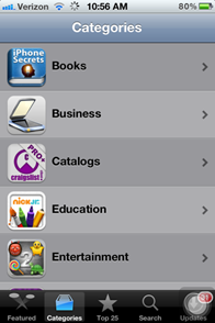 The App Store is usually located on the Home Screen of both iPads and iPhones. The store itself is fairly simple to navigate, with menu buttons at the bottom to guide you. If you are not quite sure what you are looking for, the category tab is a great place to start. Categories range from Business and Productivity to Music, Games and everything in-between.